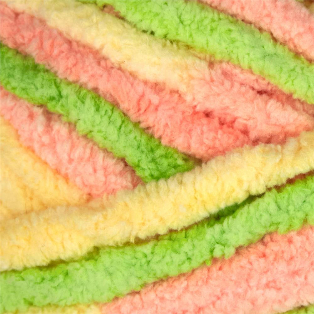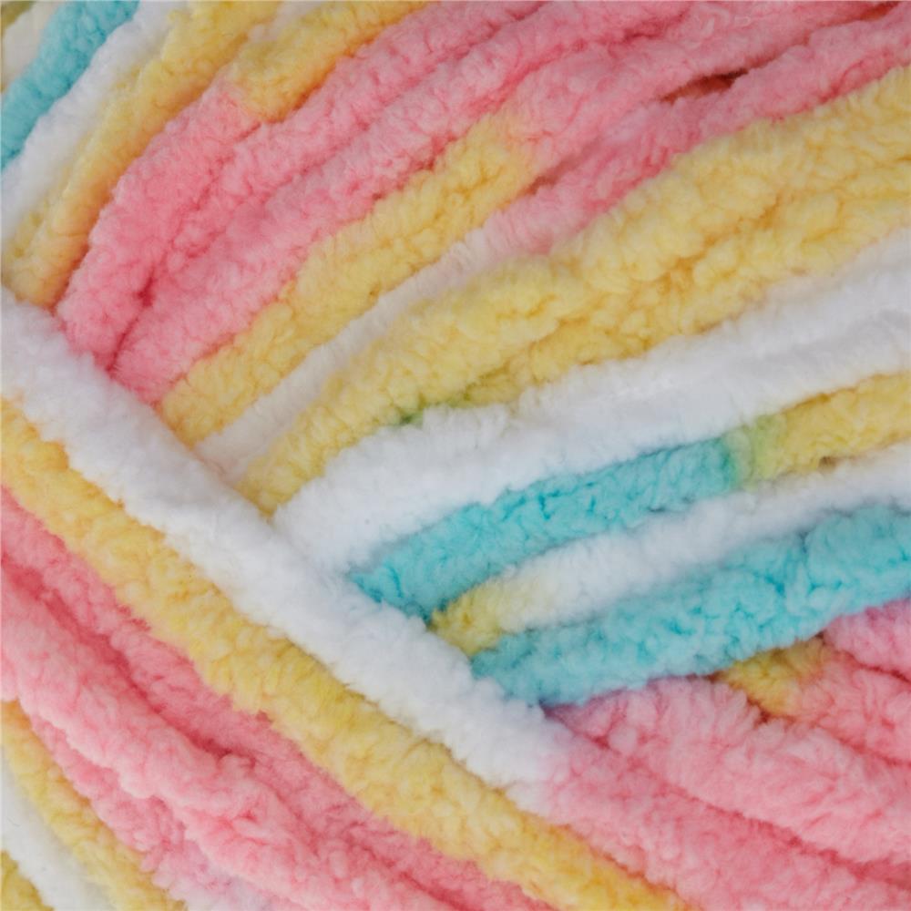 Super soft and bulky chenille-style baby yarn in a fun shade range.
