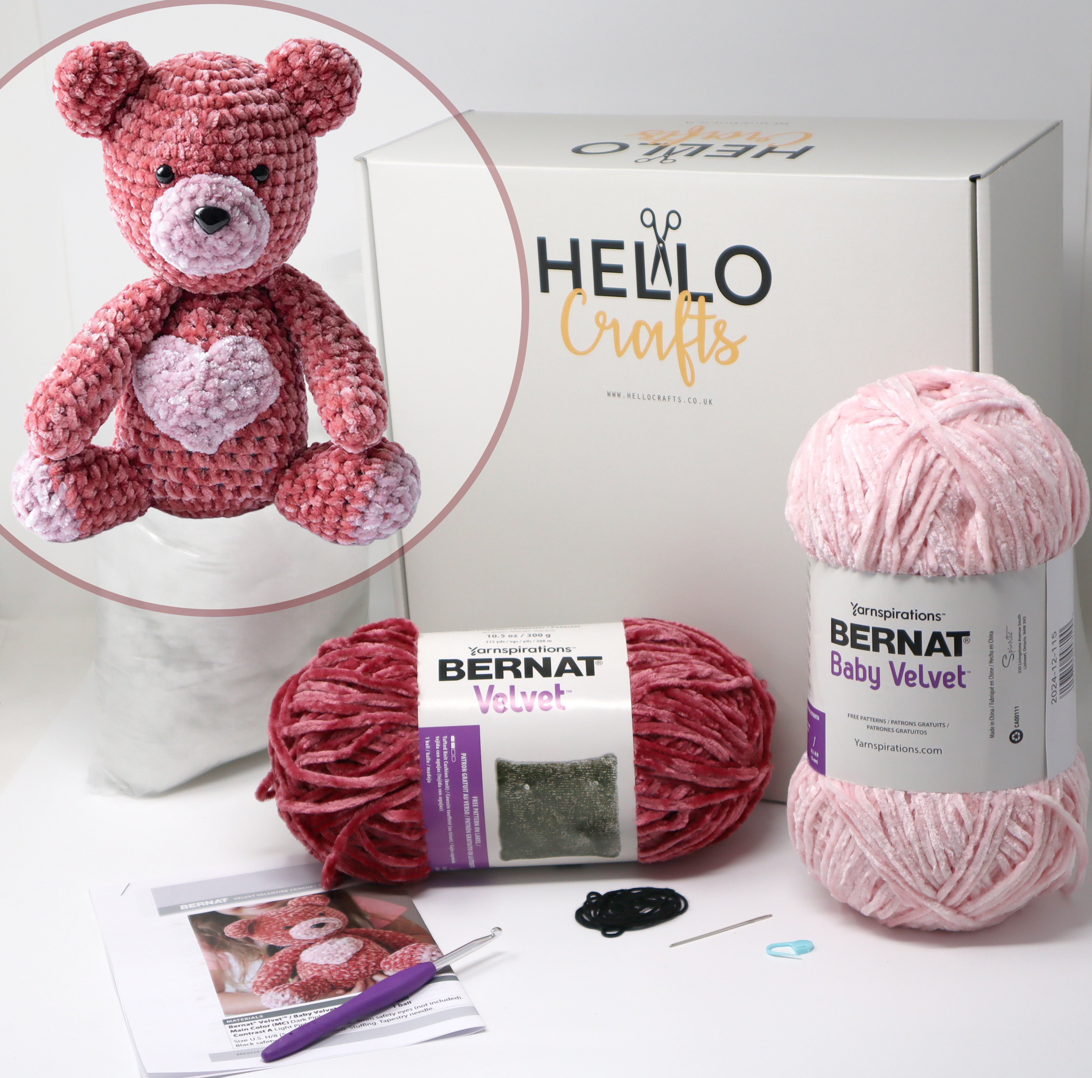 This cute crochet teddy bear pattern is a perfect Valentine’s Day gift idea for a loved one, and works as a gift year-round, too. Bernat Velvet, a bulky weight yarn, makes for a plush finish. The contrasting crochet heart accent adds a sweet touch.