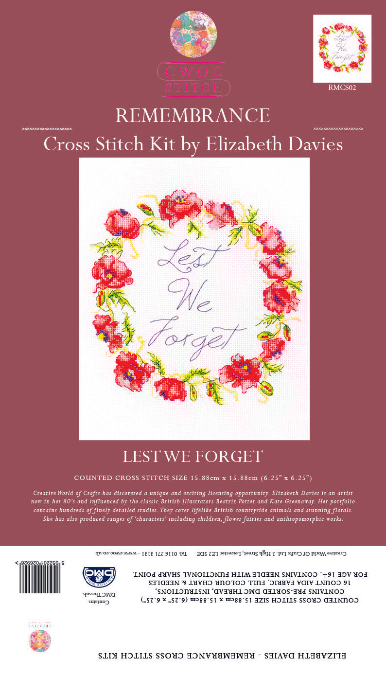 Remembrance Counted Cross Stitch Kit - Lest We Forget